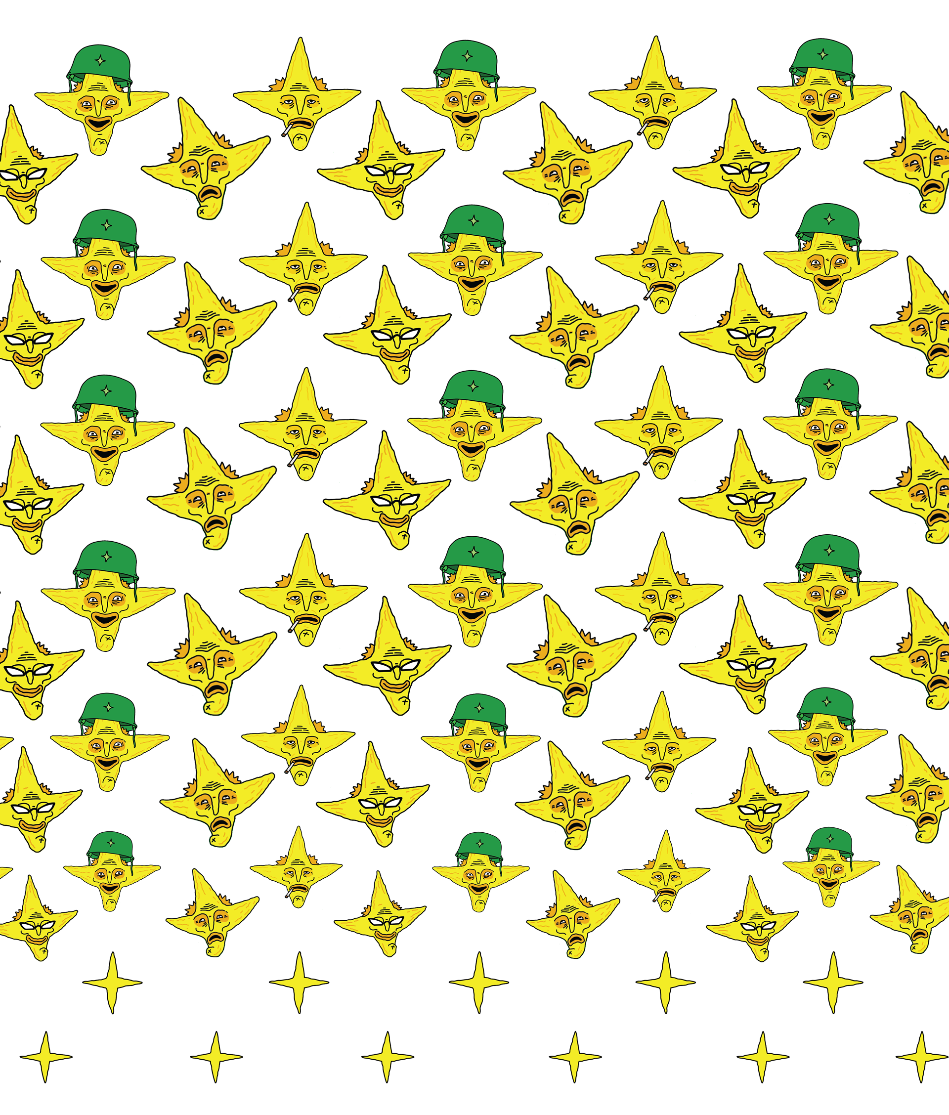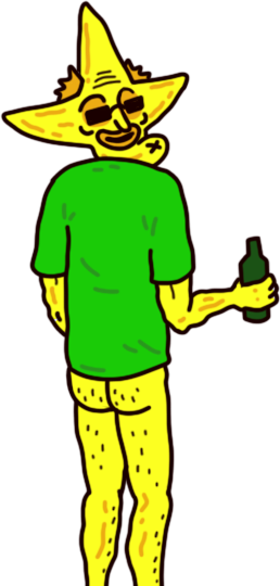 A cosmic mistake. Once a bright point in the sky, Bebo slipped from the constellations, crashing into earth’s grime with a grin and a hunger for chaos. Now he stumbles through the nights, reeking of cheap liquor and burnt powder, longing for fortune and power of a blockchain star.